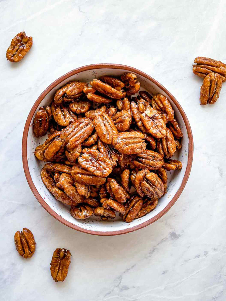 *U.S Food and Drug Administration: Scientifc evidence suggest but does not prove that eating 1.5 ounces per day of most nuts, such as pecans, as part of a diet low in saturated fat and cholestrol may reduce the risk of heart disease. One serving of pecans (28g) has 12g of "good" monounsaturated fat